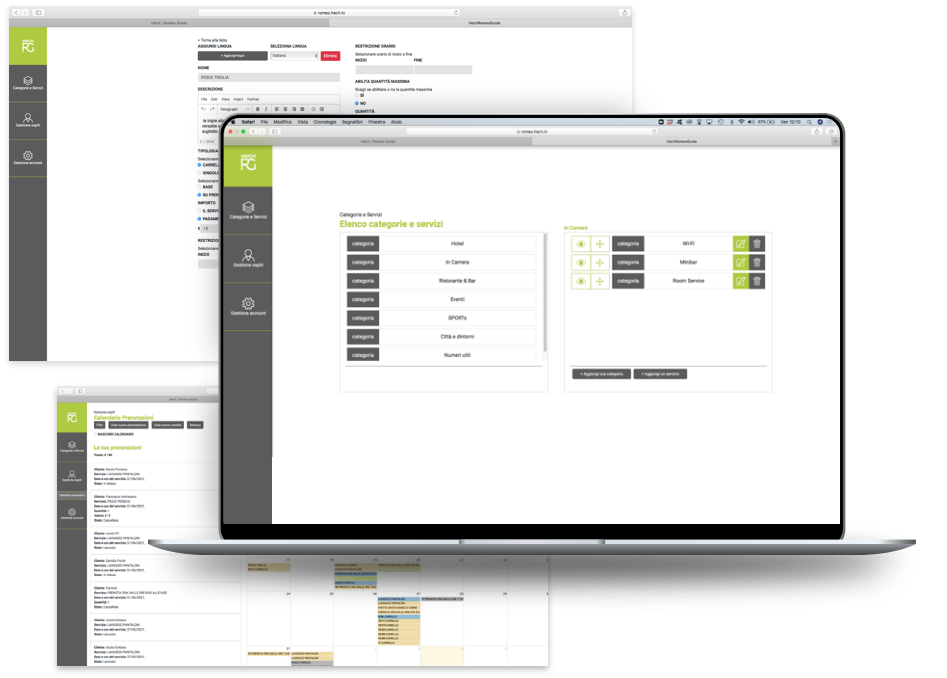 Hech Romeo è la soluzione all-in-one per la gestione hotel che consente alla tua struttura di gestire da una unica piattaforma tutti i dispositivi di comunicazione presenti nelle camere, nelle hall, nei corridoi, nei ristoranti. Hech Romeo è sia una Room Directory Digitale che consente ai vostri ospiti di avere a portata di mano su TV e Smartphone tutte le informazioni utili per un soggiorno indimenticabile come listini, menu room service, menu ristoranti e pizzerie e sistema di prenotazione servizi ancillari e tavoli, sia un supporto alla manutenzione da remoto per tenere aggiornata la lista canali e le impostazioni dei Tv senza dover accedere a tutte le camere. Hech Romeo facilita e permette allo staff della vostra struttura di dedicarsi alle attività che creano maggiore e reale valore per i vostri ospiti.